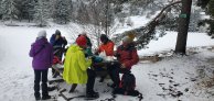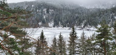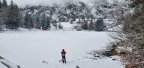 Dès le 1er jour, déjà des situations cocasses : Daniel court après le conducteur du chasse neige en tournant autour de sa machine… Ils ont fini par se retrouver !!! Nicole sème ses affaires sur le chemin, heureusement, le serre-file ramasse tout ce qui traine !!! Lors de cette randonnée, nous étions censés voir les lacs Vert et Forlet ; nous n’avons vu que du blanc dans le brouillard et le froid !!!! Les raquettes sont restées bien au chaud.