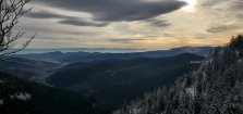 Le 2ème jour, à partir du col de la Schlucht, nous randonnons vers « Le Hochneck », un des monts les plus hauts des Vosges, avec un vent si violent que nous tenons à peine debout au sommet. Pourtant la vue à 360° sur les Vosges, l’Alsace, le Jura et les Alpes est magnifique ! Aujourd’hui, le groupe du lundi est en super forme, il a dépassé celui du jeudi/mardi, parti devant !!!! Pas de rancunes, nous nous retrouvons tous, joyeusement, autour d’un chocolat ou d’un vin chaud en fin d’après-midi !